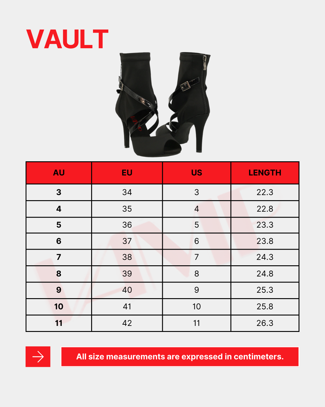 Vault is built to look powerful from every angle. The stretch lycra wraps the ankle in a smooth, sculpted line, while the PU crossover straps cut across the foot in a sharp, structured silhouette. The silver hardware and VAMP charm add that signature edge without taking away from the clean look.